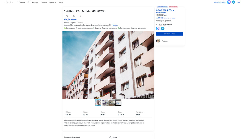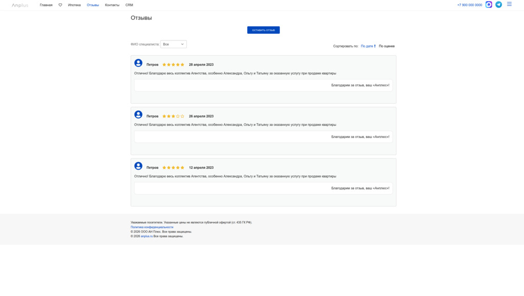 Удобство работы — риелторы работают в единой системе, без Excel и разрозненных сервисов.