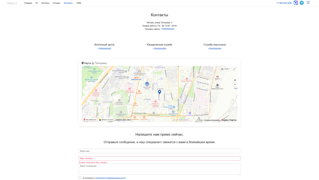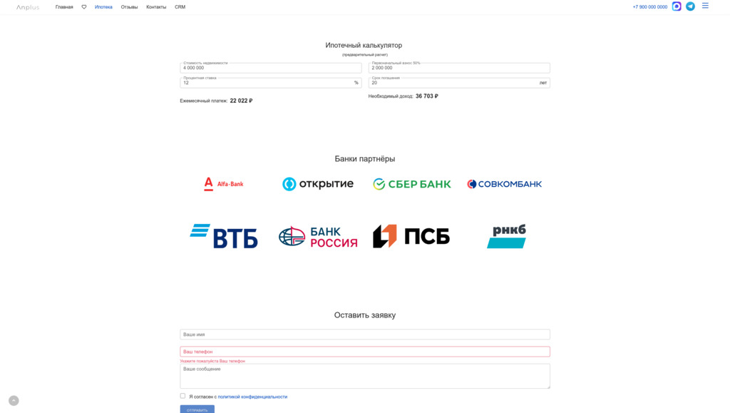 Формы заявок и обратной связи: заявки на просмотр, подбор объекта, консультацию, оценку недвижимости.