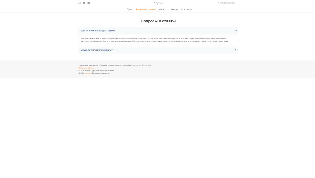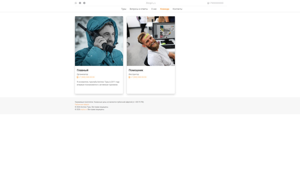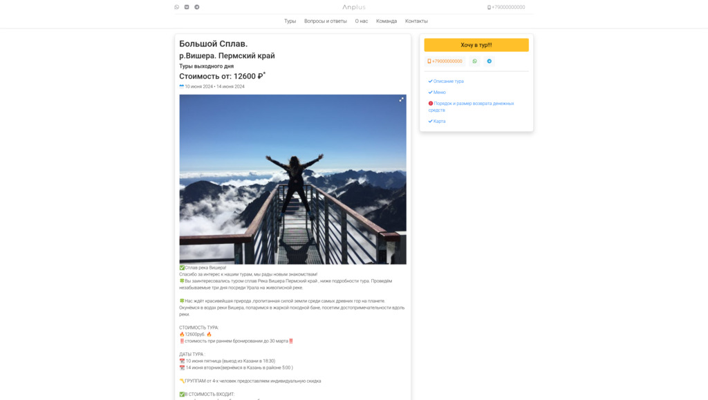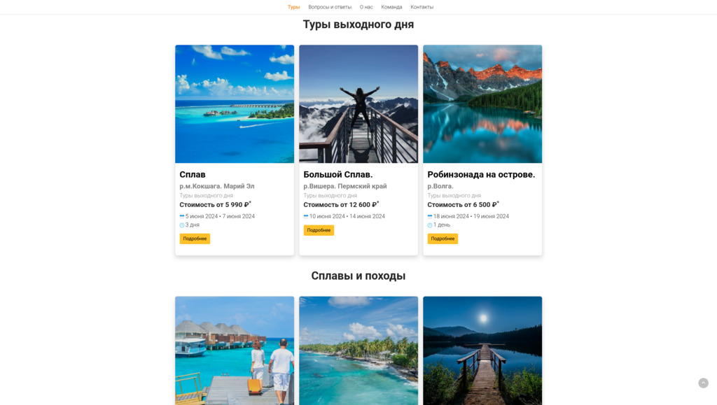 Сайт создан для туристических клубов, походных команд, outdoor‑школ и организаторов активного отдыха. Он позволяет публиковать маршруты с подробными описаниями, показывать их на карте, добавлять фотографии, расписание, стоимость и собирать заявки на участие.