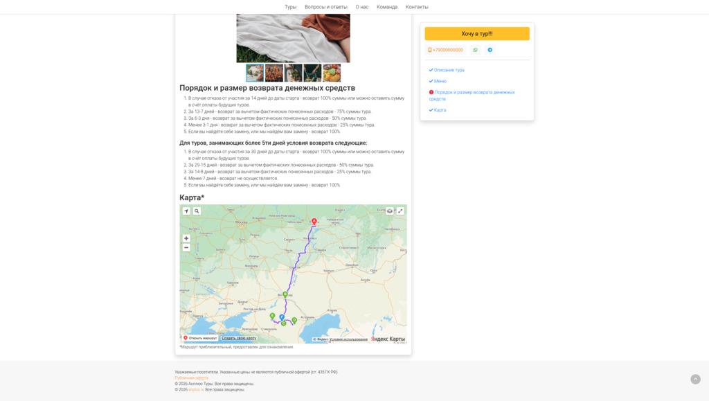 Формы записи на туры, консультации и индивидуальные маршруты.